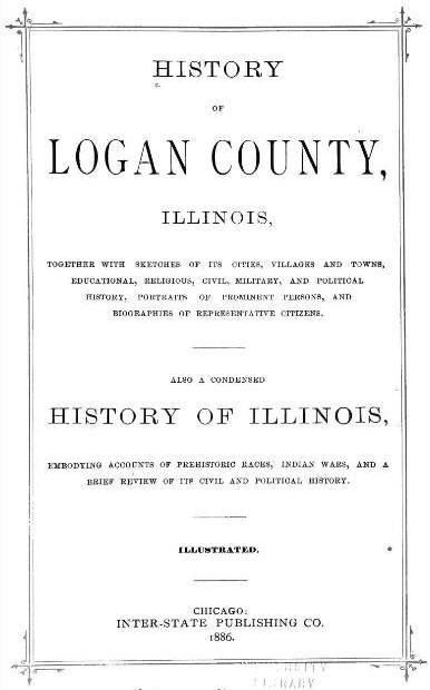 the 'mount' of Mount Pulaski." The surface of the country around and about Mount Pulaski is an undulating prairie. To the north, about two miles, it is the main channel of Salt Creek, a tributary of the Sangamon river. About seven miles to the south is the lake Fork of Salt Creek. In prehistoric days, Salt Creek was a considerable stream. Ferdinand Ernst, a Hanoverian traveler, who saw it in 1819 and wrote about it, called it a 'navigable stream'. The Kickapoo Indians called it the 'Onaquispasippi' or 'the river of the shell-bark hickories.' In the same days, the Lake Fork of Salt Creek was a veritable lake, covering thousands of acres at high water. At low tide, its bordering lands were marshy moors, where deer and wild fowl held high carnival. The earliest settlers were wont to hug to the timbered banks of streams, where water and wood were handily accessible. They considered the prairies, by reason of wild-grass and wind-swept fires, together with lack of shade and shelter, as negligibly habitable. When Illinois was admitted into the Union as a sovereign state in 1818, there were no white settlements in what is now Logan County. The lands in the Salt Creek valley were, and for more than a century had been, inhabited by roving bands of the Kickapoo tribe, in whom possessory title was vested. Civilization came into the Sanamon and Salt Creek valley by way of an old Indian Trial which left the Mississippi near the present site of Alton and wond out and into the heart of what is now Illinois, past the present sites of Edwardsville, Carlinville, Springfield and Lincoln and on to Lake Peoria. During the war of 1812, Gov. Edwards, of the then territory of Illinois, led a band of mounted rangers along this ancient trail, from the Mississippi to the Illinois river past Elkhart hill and across Salt Creek in what is now Logan County and the trail thereafter became know as the 'Edwards' Trace'. On July 30, 1819, the Kickapoo chieftains, more or less under duress, relinquished all their right and title to the lands in the Sangamon and Salt Creek valleys to the United States for a trifling consideration which was never met in whole. Anticipating the Kickapoo treaty and the opening to settlers of the Kickapoo land, James Latham and family, coming from Kentucky in part by way of the Edwards' Trace, located at Elkhart Hill in the spring of 1819. In the fall of the same year, Robert Musick and family located on Sugar Creek, northwest of the present site of Lincoln. The Latham and Musick settlements were the first white settlements in what is now Logan County." Judge