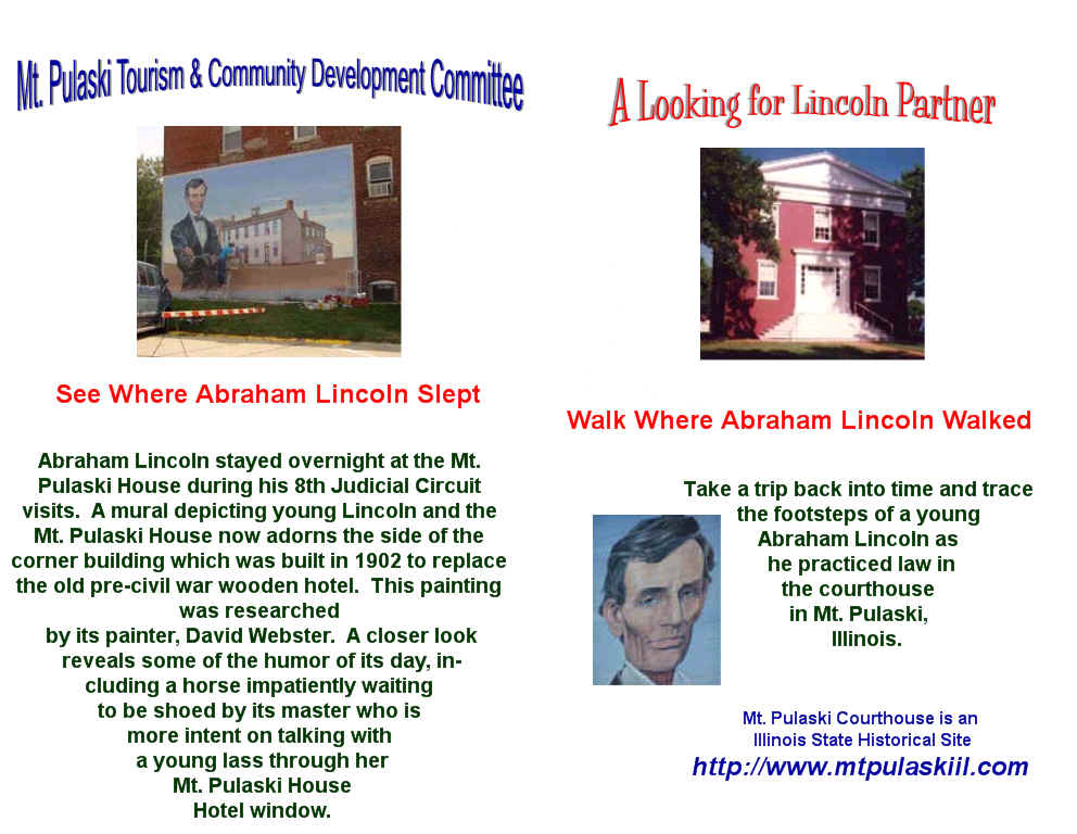 History of Jabez Capps Family - co-founder of Mt. Pulaski in 1836 1878 History of Logan County - includes History of Mt. Pulaski Township 1878 Mt. Pulaski Business Directory Links to other Histories of Mt. Pulaski & Logan County The Lincoln Log- A Daily Chronology of the Life of Abraham Lincoln |